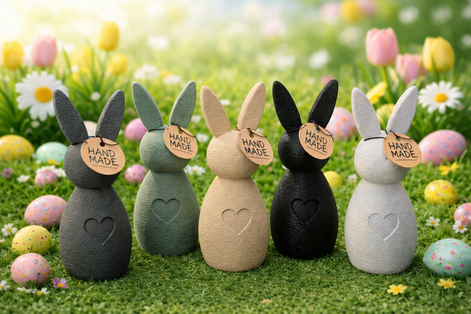 Το λαγουδάκι διαθέτει ανάγλυφη υφή και διακριτική καρδιά στο μπροστινό μέρος, προσδίδοντας μια χειροποίητη και φυσική αισθητική. Ταιριάζει απόλυτα τόσο σε μοντέρνους όσο και σε κλασικούς χώρους, αποτελώντας μια όμορφη επιλογή για πασχαλινή διακόσμηση στο σπίτι ή στο γραφείο.